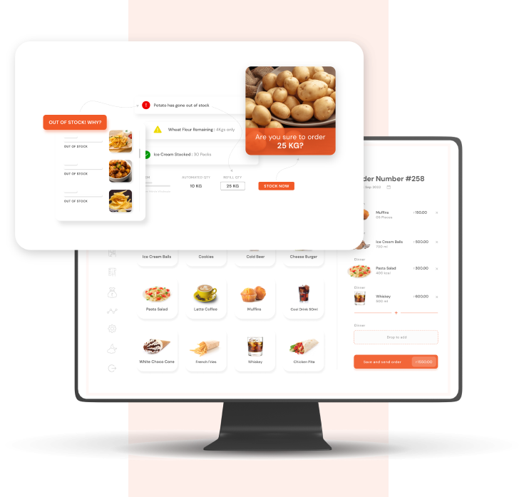 Tackle all the usual mess of a Restaurant — From managing stock inventory to multiple orders and all-round billing needs, our automated and integrated features are built for a unique user experience.