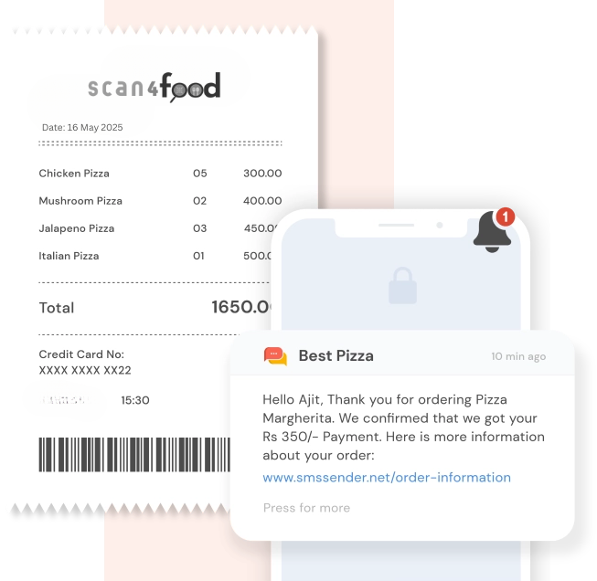 Now, you don’t need to rely on just emails and phone calls to track orders. With Scan4Food, you can send out order SMS bills as well to all your customers.