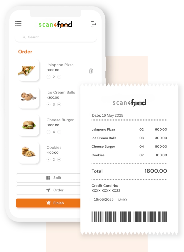 Scan4Food understands space crunch is a real thing and so we introduced Android POS with same capabilities for efficient use of spaces for Quick Service Restaurant (QSR). Android POS also helps in case network connection drops you can still accept Zomato and Swiggy orders in the Scan4Food App.