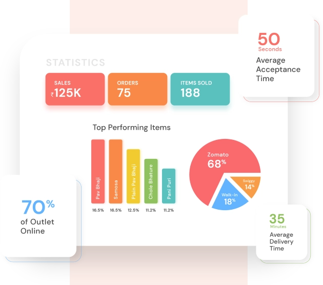 Our systems analyze, convert and track important business reports around acceptance times, best-sold items, outlet timelines, average delivery time and more.
